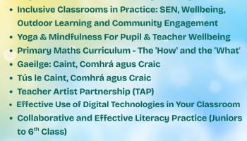 We offer a wide range of courses for Primary and Post Primary teachers and for the community.