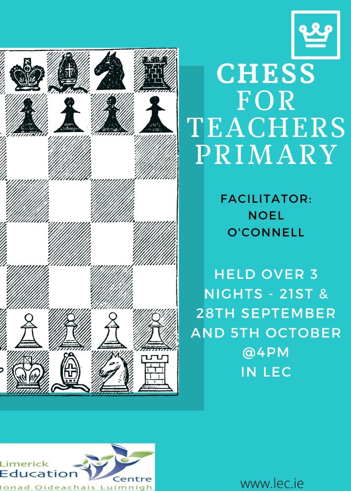 The course will teach all participants how to play chess (from zero prior knowledge) and the best methods of teaching primary school children as young as first class the rules using a fun, games-based approach and how to utilise chess as an additional resource in teaching social skills in the mainstream and special education classroom.