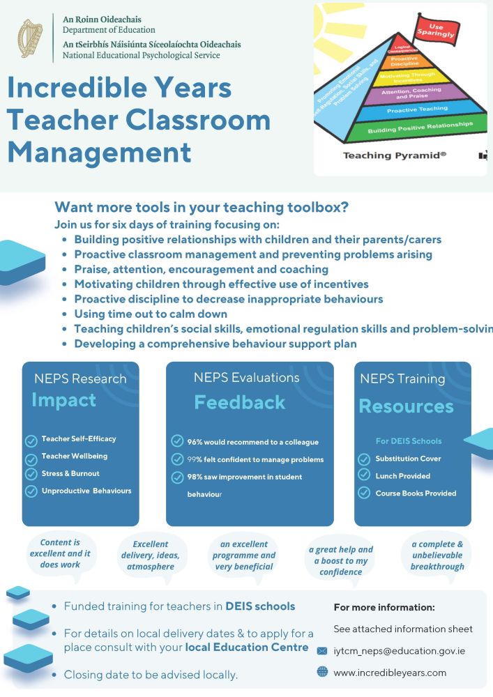 NEPS Incredible Years Teacher Classroom Management Training (IYTCM) 2022/2023